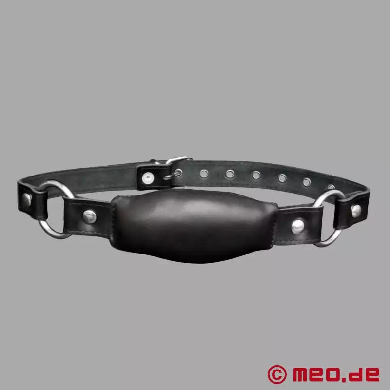 Rúško je vybavené mäkkou podložkou z najjemnejšej kože nappa, ktorá sa pohodlne nosí v ústach a zároveň takmer znemožňuje hovoriť. Tento rúško je ideálny na situácie, keď sa vyžaduje ticho, pretože účinne tlmí zvuky. Namiesto hlasného kriku alebo stonania sa otrok zahryzne do mäkkého koženého vankúšika...