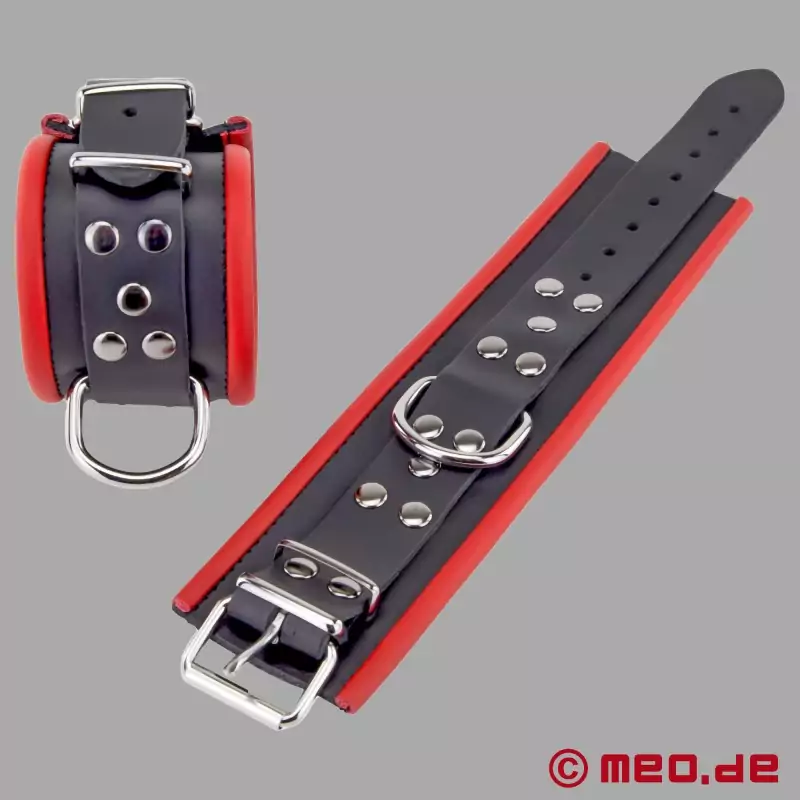Spoločnosť MEO vyrába vysokokvalitné bondage doplnky pre BDSM už viac ako dve desaťročia. Patria k nim aj tieto kožené členkové putá, ktoré ručne vyrobili zruční sedlári podľa starej tradície.