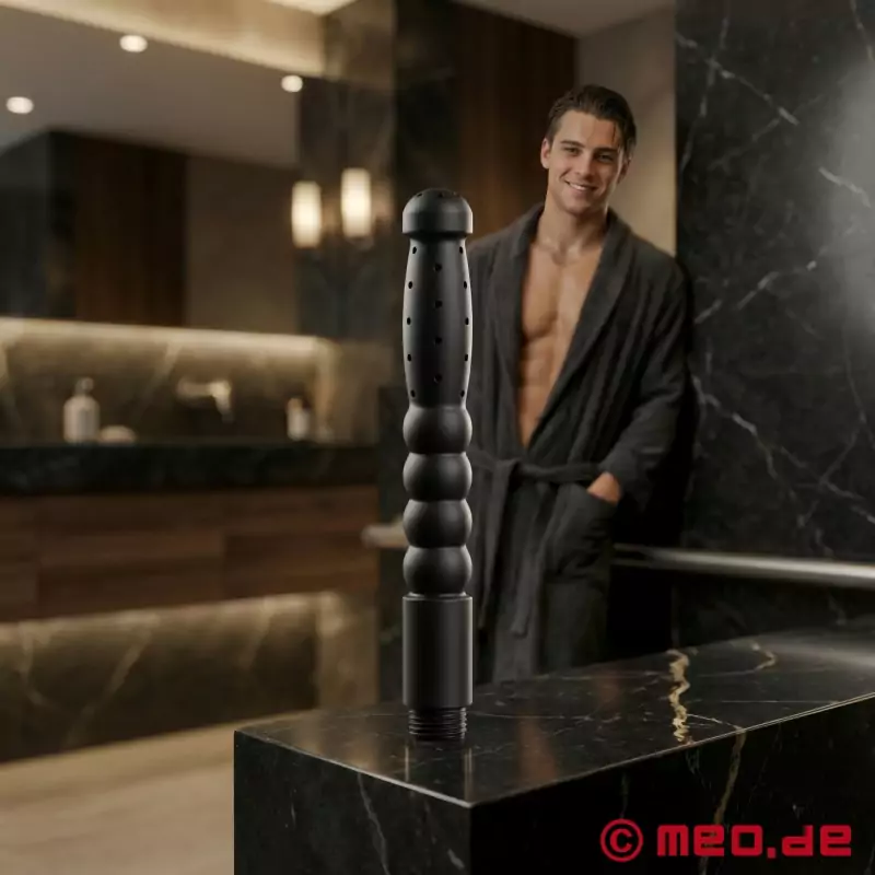 Na obzvlášť dôkladný análny výplach pred análnym sexom odporúčame našu luxusnú análnu vodu "Black Panther™" na intímnu hygienu. Análna sprcha "Black Panther™" je praktická sprchová hlavica, ktorú možno rýchlo pripojiť k akejkoľvek bežnej sprchovej hadici.