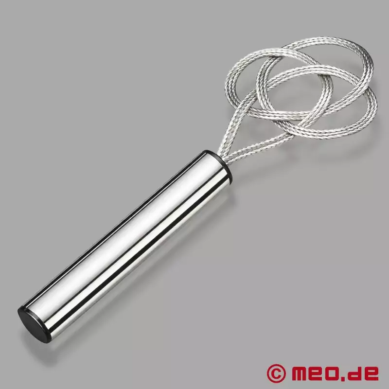 Šľahač na koberce z nehrdzavejúcej ocele od MEO® je modernou interpretáciou klasického nástroja strachu - nie je upletený z ratanu, ale z pevného, mierne ohybného oceľového lanka. Výrazný tvar slučky pripomína námornícky uzol a umožňuje cielené, hlboké údery s veľkým účinkom. A čo je najlepšie: šľahač na koberce udiera tvrdo, ale ticho - ideálny na sedenia s vervou, ale bez toho, aby vyvolával rozruch. Či už ide o disciplínu, alebo rituál: šľahač na koberce dáva jasne najavo, kto je vo vašom vzťahu pánom.