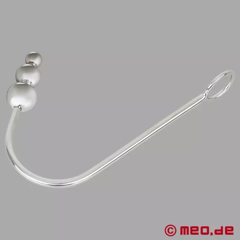 Dieser Bondage Anal Hook hebt sich von den meisten anderen dadurch ab, dass er gleich drei Kugeln am einführbaren Ende hat. Hierdurch wird noch mehr anale Stimulation erzeugt.