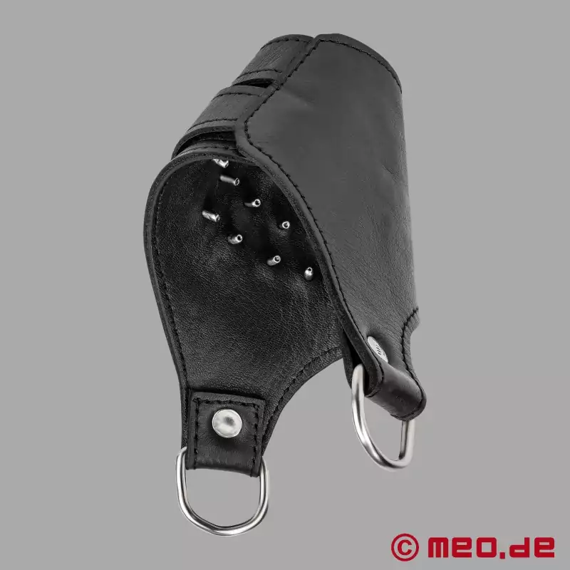PainMaster™ sa z dobrého dôvodu etabloval ako nepostrádateľný doplnok na BDSM scéne. Tento vysokokvalitný výrobok kombinuje intenzívne ball stretching so stimulačným účinkom hrotov, čím vytvára jedinečný zážitok z rozkoše a jemnej bolesti. Vďaka praktickým suchým zipsom možno PainMaster™ dokonale prispôsobiť individuálnej anatómii a osobným preferenciám. Vďaka tomu je ideálny pre začiatočníkov aj pokročilých používateľov. Dva robustné D-krúžky tiež ponúkajú množstvo možností, ako zintenzívniť zážitok pomocou závaží, šnúr alebo iného príslušenstva a posunúť ovládanie na novú úroveň. Vysokokvalitné spracovanie z najlepšej kože zaručuje odolnosť, pohodlie a bezpečnosť - základné faktory pre BDSM doplnky, ktoré sa používajú počas intenzívnych sedení. PainMaster™ je všestranný a je vhodný na sólové sedenia, ako aj na použitie vo dvojici, kde dokonale spája dominanciu, kontrolu a estetiku.