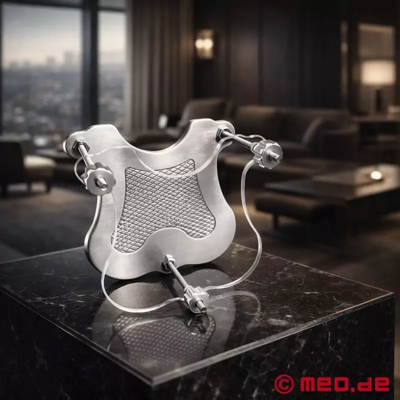 Jeden Abend, nachdem ich den Keuschheitsgürtel meines Mannes abgenommen habe, benutze ich dieses Gerät von Dr. Sado, um ihn zu bestrafen und gleichzeitig zu erregen. Mit den leicht verstellbaren Schrauben kann ich den Druck genau kontrollieren..... Ich genieße das Gefühl der absoluten Kontrolle, während ich den Druck langsam erhöhe. Für uns beide ist die Mischung aus Schmerz und Hingabe eine einzigartige Erfahrung