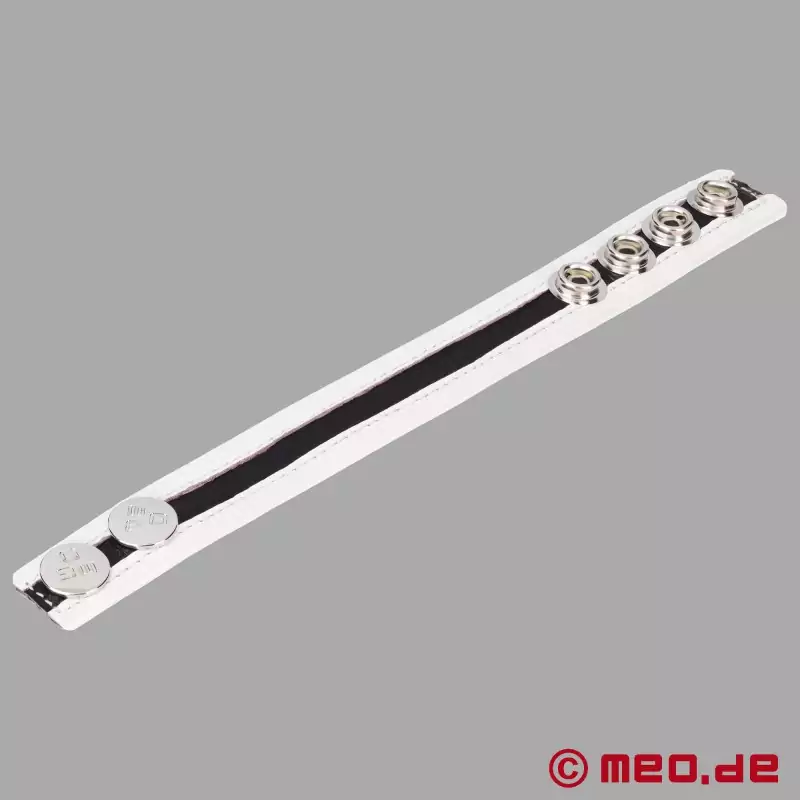 Pohodlne nastaviteľný, klasický dizajn, nekomplikované ovládanie. Tento čierno-biely krúžok na penis vďaka zapínaniu na cvočky vždy perfektne sedí a dá sa presne nastaviť na požadovanú veľkosť. V Hanky Code sa biela verzia tradične spája s túžbou po spoločnej masturbácii.