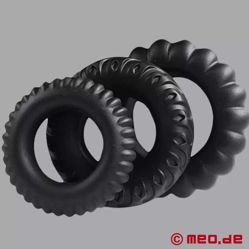 Pružný silikónový materiál zaručuje pohodlné nosenie pre všetkých mužov bez ohľadu na veľkosť ich penisu. Vďaka vnútornému priemeru približne 20 mm, ktorý sa dá roztiahnuť až na 50 mm, krúžky ponúkajú flexibilné uchytenie a bezpečné priľnutie.