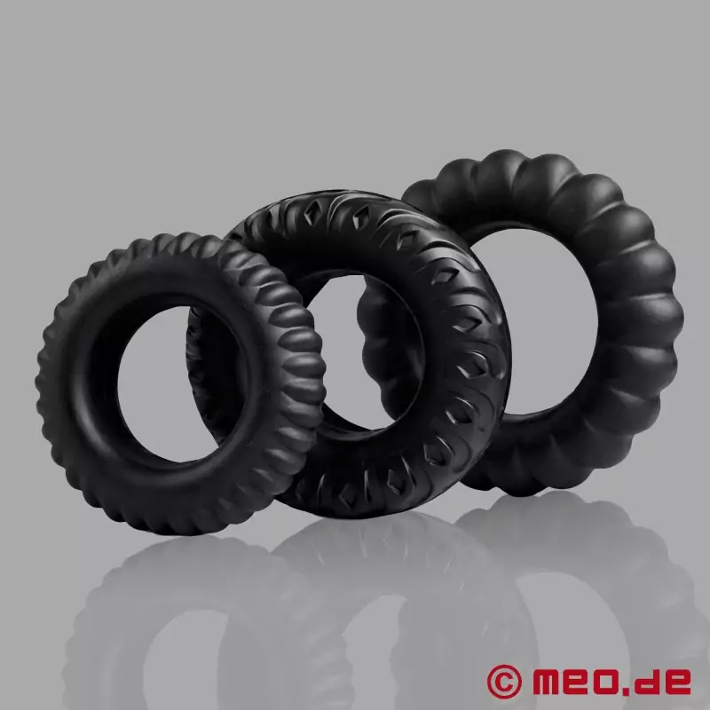 Pružný silikónový materiál zaručuje pohodlné nosenie pre všetkých mužov bez ohľadu na veľkosť ich penisu. Vďaka vnútornému priemeru približne 20 mm, ktorý sa dá roztiahnuť až na 50 mm, krúžky ponúkajú flexibilné uchytenie a bezpečné priľnutie.