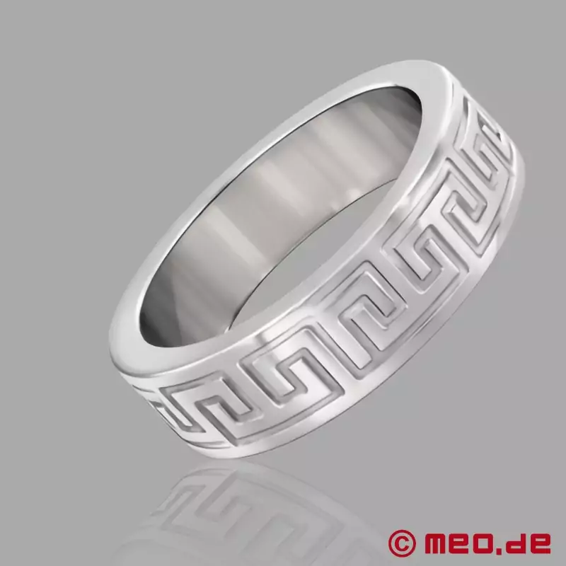 Tento luxusný Cock Ring z nehrdzavejúcej ocele podporuje erekciu, zlepšuje vzhľad a vyzerá ako šperk. Nepretržitý vzor "La Greca", známy aj ako "grécky kľúč", je precízne vygravírovaný laserom a dodáva Cock Ringu ikonický vzhľad.