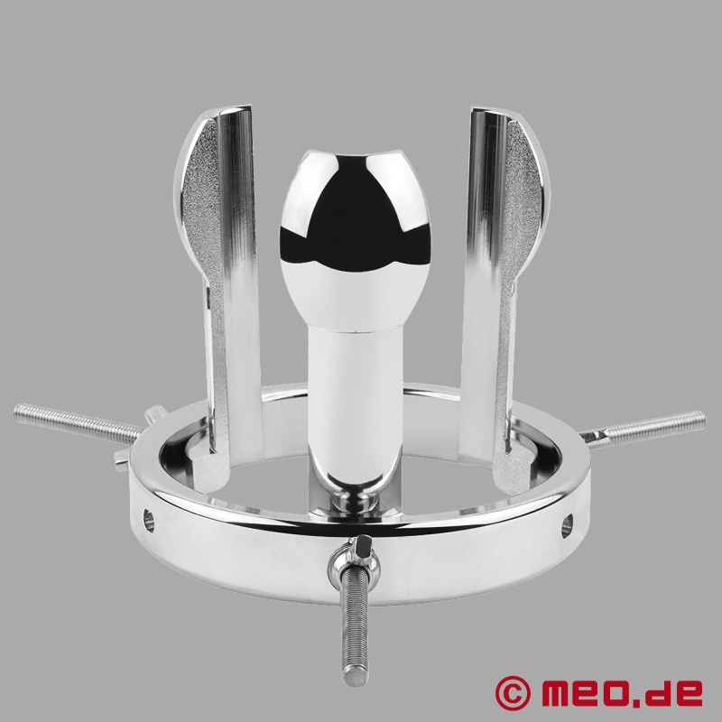 Použitie je veľmi jednoduché! Tri boky (lopatky) prstencového špekulanta sa v uzavretom stave zasunú približne 8,5 cm hlboko. Rovnomerným skrutkovaním sa teraz rozťahovanie vykonáva kontinuálne až do takmer 100 mm. Dom môže postupne nastavovať expanziu od cca 40 - 100 mm a pomaly, ale stabilne rozširovať Sub. Krúžkovú spekuláciu DAS LOCH 3.0 môžete zahriať a navlhčiť lubrikantom, napríklad FUCKSLUT by MEO®, aby bolo vyšetrenie pohodlnejšie, alebo ju môžete na krátky čas vložiť do chladničky a zaviesť bez lubrikantu, čo je vnímané ako oveľa nepríjemnejšie - záleží na tom, ako poslušná je vaša Sub. Samozrejme, análny špekulant sa dá použiť aj bez partnera, napr. pred zrkadlom.