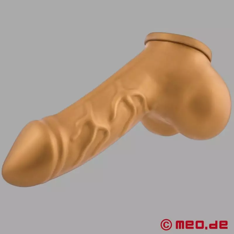 Tesne priliehajúci návlek na penis Toylie® posilňuje erekciu, poskytuje úchvatný pocit a viditeľne definovaný vzhľad - a zároveň vyzerá mimoriadne sexy. Vďaka anatomickému tvaru a extrémne elastickému latexu zlatej farby (0,5-0,7 mm) sa návlek na penis, ktorý sa vyrába ručne v Berlíne, prispôsobí ako druhá koža.