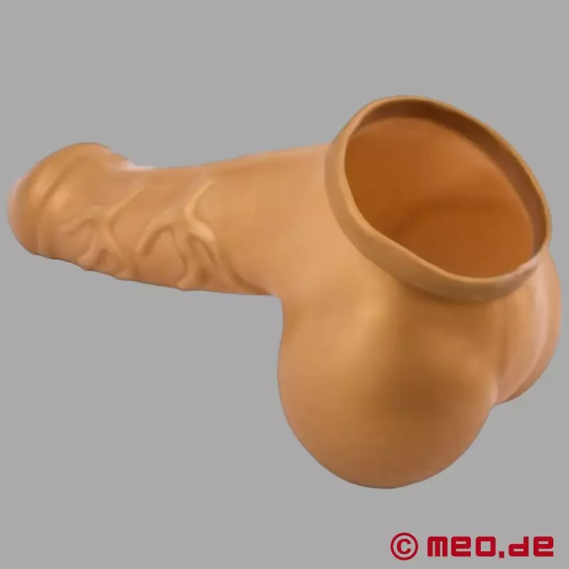 Máte na výber: bezšvový návlek na penis je k dispozícii v čiernej, červenej a zlatej farbe. Je anatomicky dokonale tvarovaný - s vypuklým žaluďom, jasnými žilami a dostatočným priestorom pre miešok. Výsledkom je veľmi tesné priliehanie, ktoré pôsobí ako kompletný penis a semenníky a vyvoláva okamžitý vizuálny dojem.