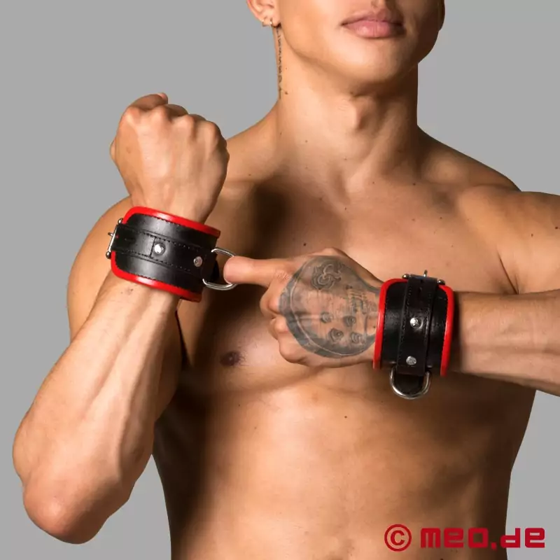 Pri týchto dvojfarebných putách na ruky z pravej kože si môžete vybrať z rôznych farieb, ako je čierna, zelená, červená, modrá a biela. Tieto farby sú analogické s Hanky Code, ktorý je známy po celom svete. Tento farebný kód nenecháva žiadne otázky bez odpovede a Sub môže potenciálnym partnerom vopred povedať, čo má rád alebo aký je jeho fetiš.