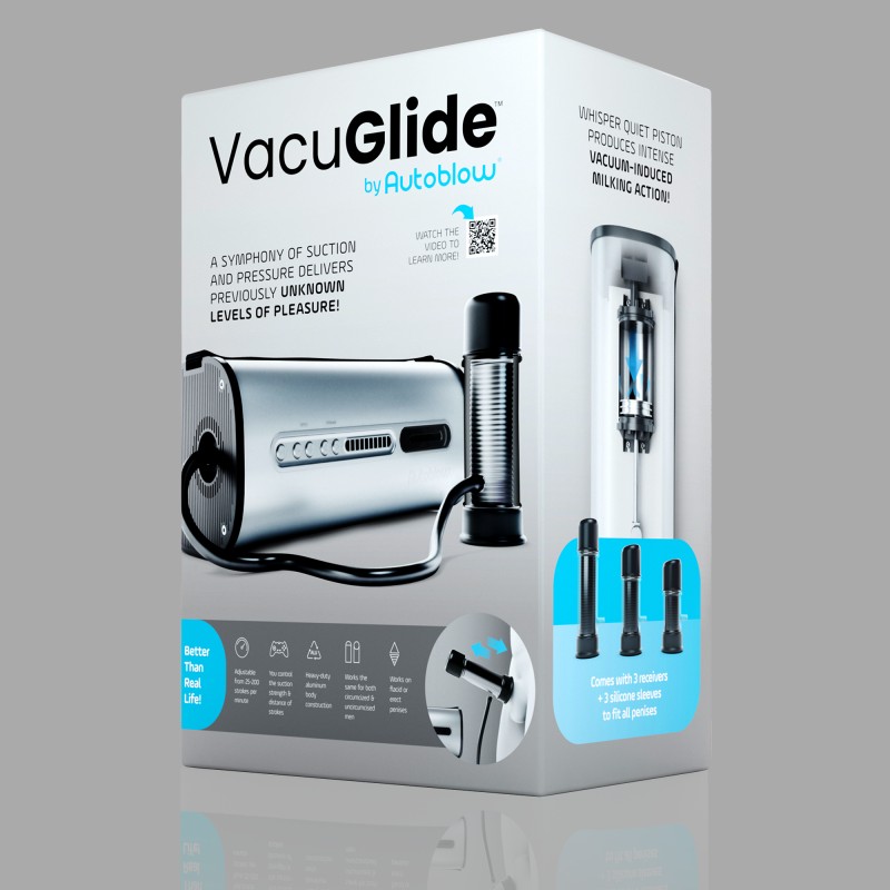 Strojček na masturbáciu mužov AutoBlow® VacuGlide™ 2 sa dodáva s tromi stimulačnými valcami. Silu sania a zážitok zo stimulácie možno meniť pomocou elektronicky ovládaných ventilov. Okrem toho možno pomocou imbusového kľúča nastaviť maximálnu dĺžku zdvihu. Vďaka tomu je možné VacuGlide™ 2 prispôsobiť rôznym preferenciám a intenzite - od kontrolovanej masturbácie až po intenzívnu funkciu dojenia.