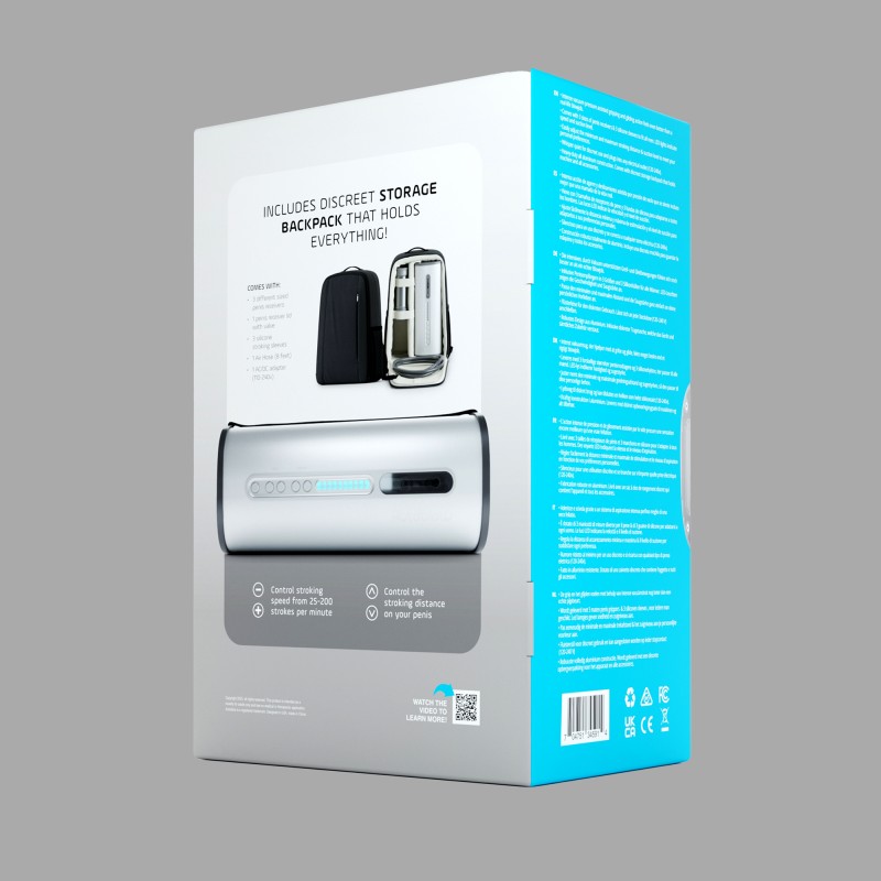 Približne 6 kg vážiaci masturbačný strojček pozostáva z robustného puzdra vyrobeného z extrudovaného hliníka s hrúbkou steny približne 3,2 mm. Dojčiak je na svoju veľkosť prekvapivo tichý a vydáva diskrétne bzučanie piestu a motora. Pre poriadok a diskrétnosť je súčasťou balenia vysokokvalitné úložné vrecko.