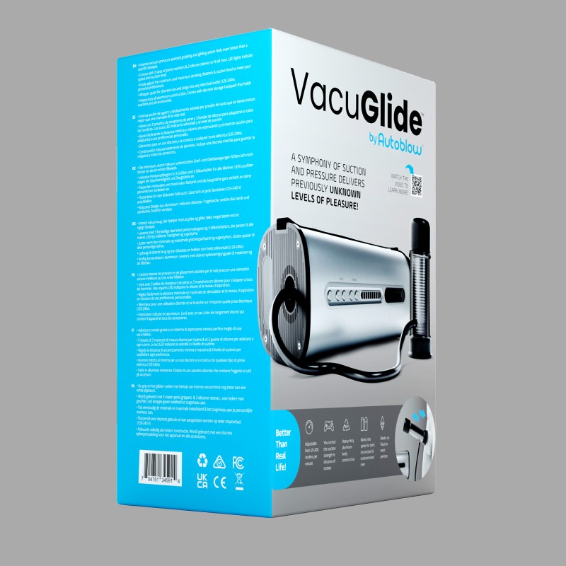 Novinka s VacuGlide™ 2: viac ovládania, viac programov, viac možností. Najnovšia verzia masturbačného strojčeka AutoBlow® ponúka 20 rýchlostí (namiesto predchádzajúcich desiatich) vrátane veľmi pomalých rýchlostí s až desiatimi ťahmi za minútu. Okrem toho je k dispozícii desať offline programov, takzvaných "Stroking Experiences", pri ktorých sa pohyb valcov automaticky mení. Zariadenie VacuGlide™ 2 je kompatibilné so sieťou WLAN, čo umožňuje online funkcie, ako je diaľkové ovládanie, autopilot, režimy sťahovania a funkcie synchronizácie videa.